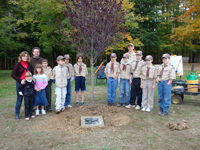 Our Pack planted a tree in Tony’s memory because Tony’s tree WILL grow up and the tree WILL have a job. As Boy Scouts we will spend a lot of time at Camp Manatoc for campouts and summer camp. Tony’s tree will grow each year as we grow too. Tony’s tree will have the job of providing shade on hot days, blooming with beautiful flowers in the spring, and adding to the overall beauty of a place we will enjoy.